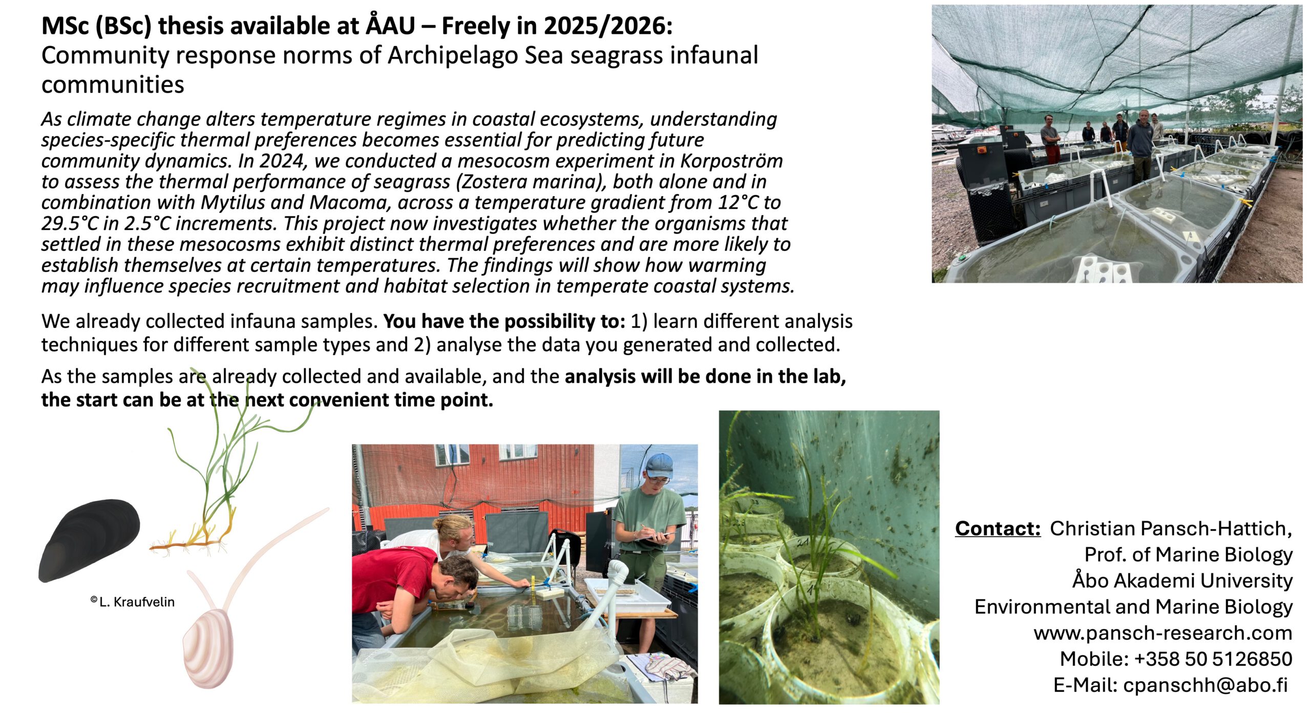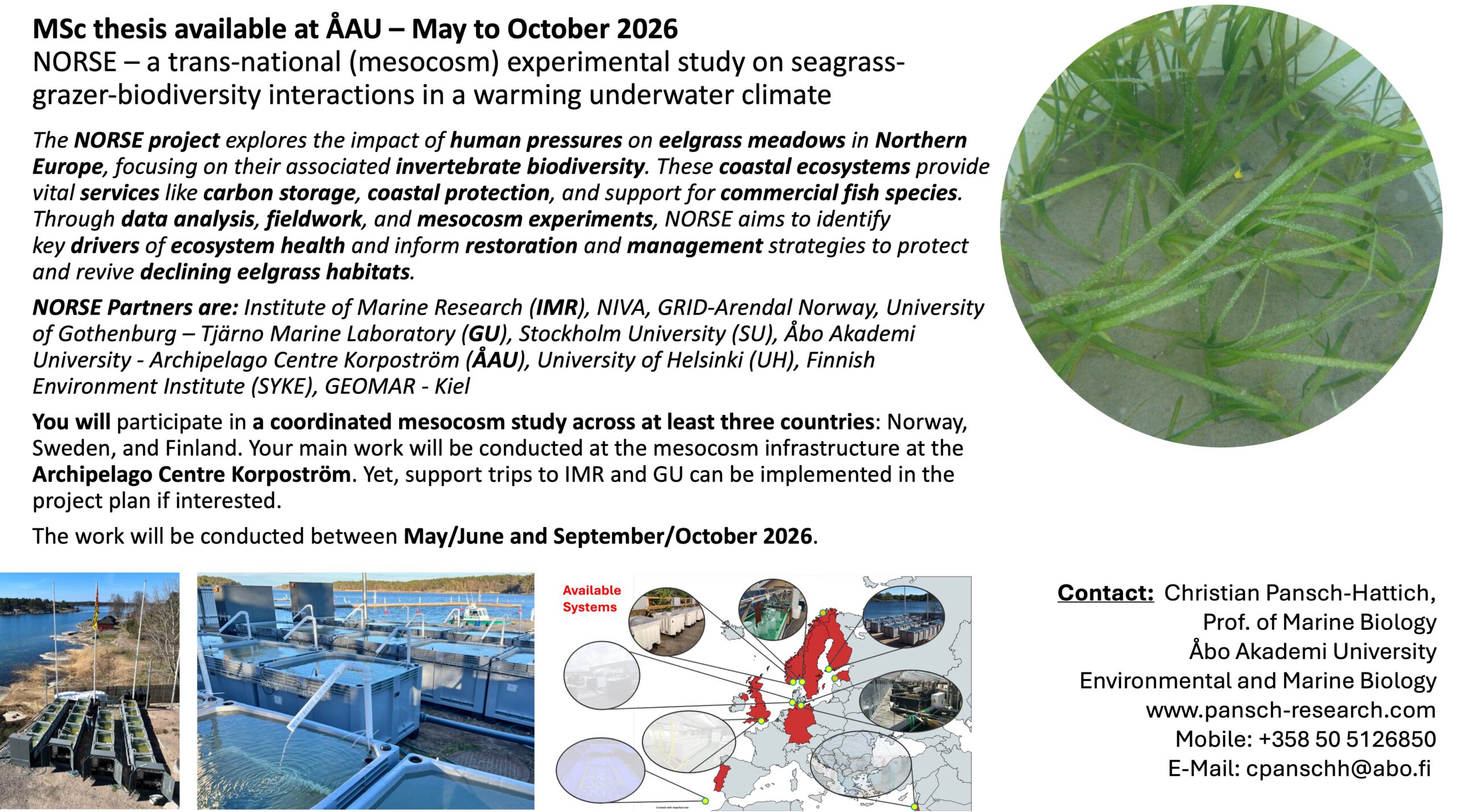 MSc thesis available at ÅAU – May to October 2026: NORSE – a trans-national (mesocosm) experimental study on seagrass-grazer-biodiversity interactions in a warming underwater climate