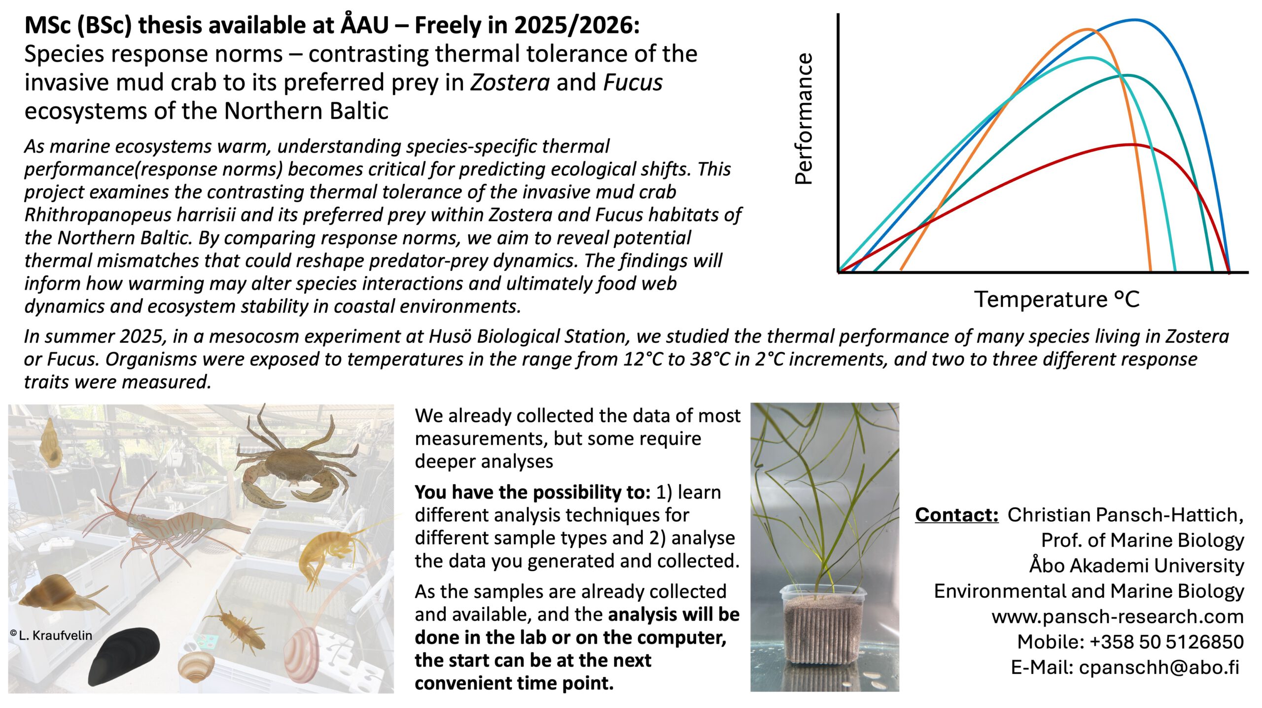 MSc (BSc) thesis available at ÅAU – Freely in 2025/2026: Species response norms – contrasting thermal tolerance of the invasive mud crab to its preferred prey in Zostera and Fucus ecosystems of the Northern Baltic