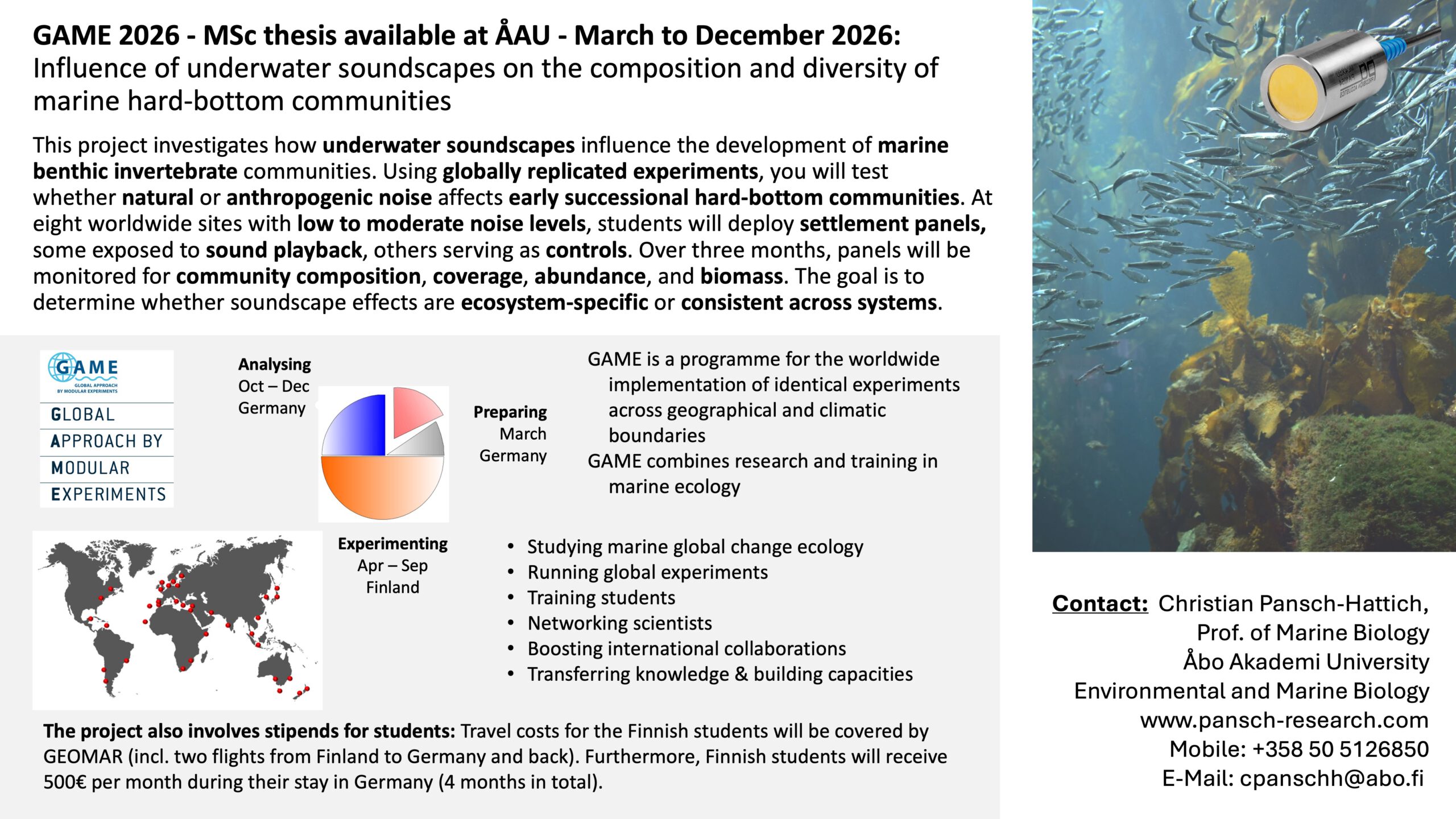 GAME 2026 – MSc thesis available at ÅAU – March to December 2026: Influence of underwater soundscapes on the composition and diversity of marine hard-bottom communities